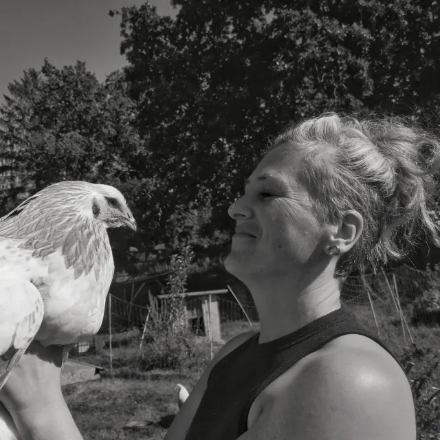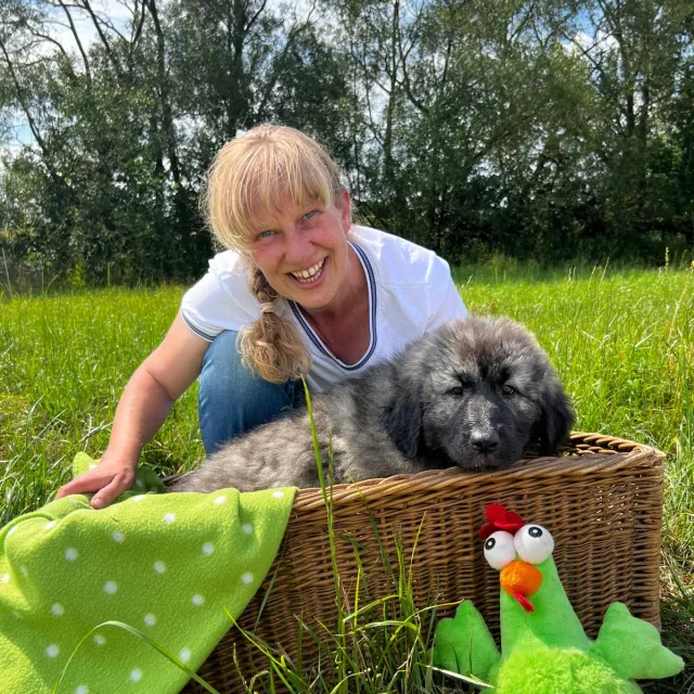 Kerstin Eckhardt ist Mitglied im BVMG e. V. Neben der Eierproduktion in Mobilställen und deren Vermarktung, setzt der Betrieb beim Schutz seiner Hühnerherden auf die Herdenschutzhundrasse Šarplaninac, deren artgerechter Haltung und mitunter auch Zucht. Kerstin ist auch aktives Mitglied im Verband Herdenschutz.