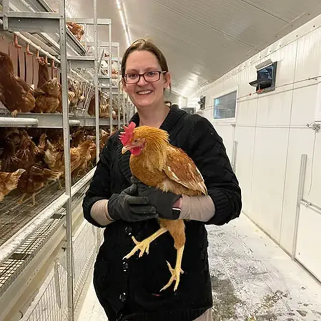 Lisa Jung hat im Fachgebiet Nutztierethologie und Tierhaltung der Universität Kassel schwerpunktmäßig das Thema „Brustbeinschäden und Frakturen bei Legehennen" bearbeitet. Heute ist sie an der Stiftung Tierärztliche Hochschule Hannover im Wing-Team tätig.